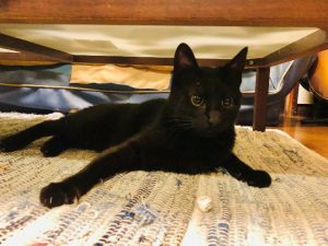 おなかがひとすじだけ白い「丹田(たんでん)」という名前の黒猫を飼っています。