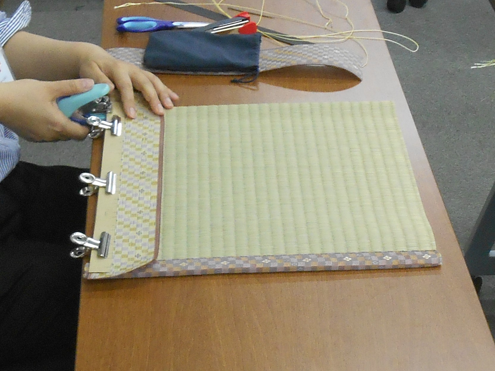千葉県職業能力開発協会主催・ものづくりの魅力発信講座の一環で、畳職人さんに教えていただきながら畳素材の座布団を作る体験をしました!