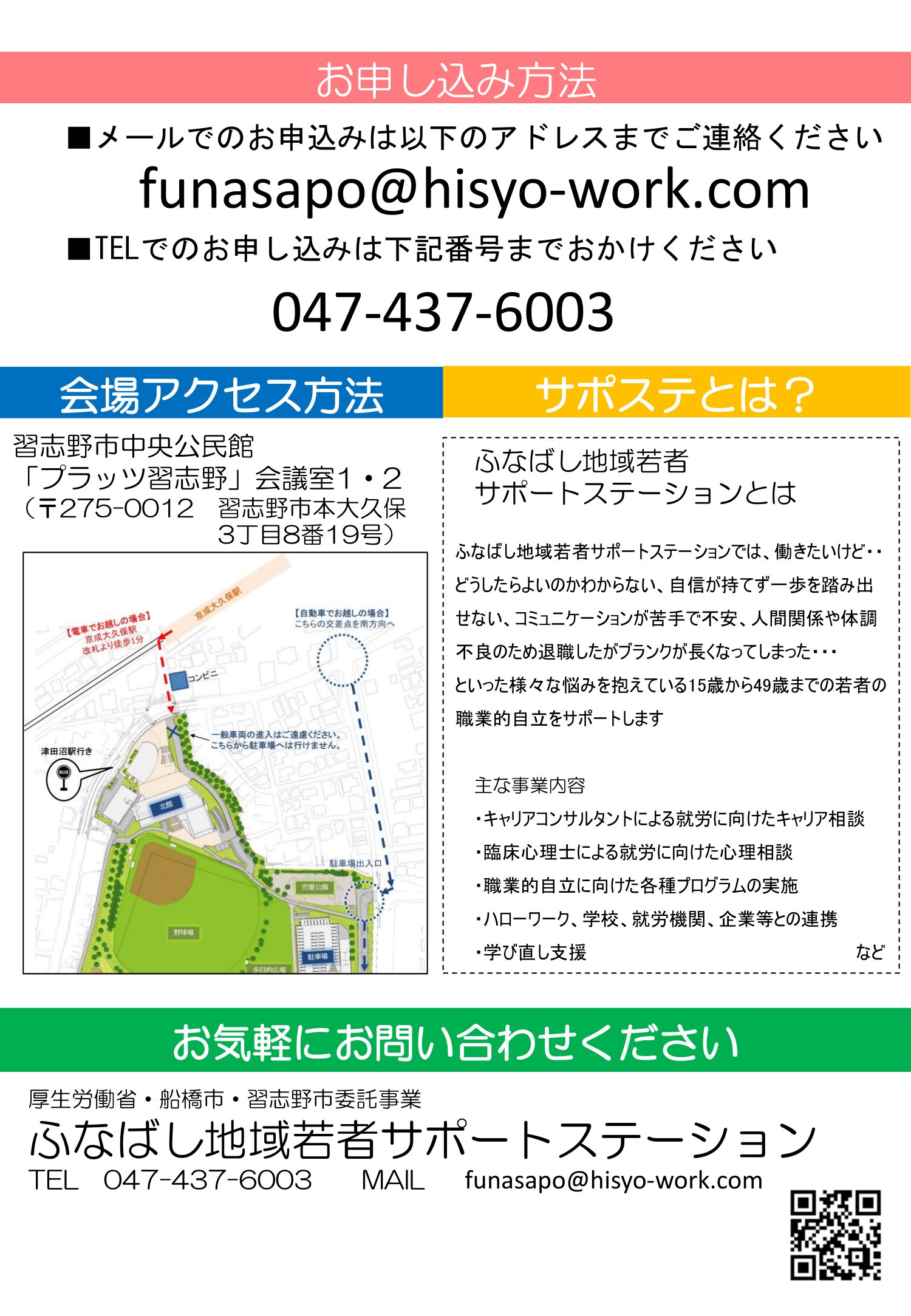 お申込み・お問合せは、ふなばし地域若者サポートステーションまで