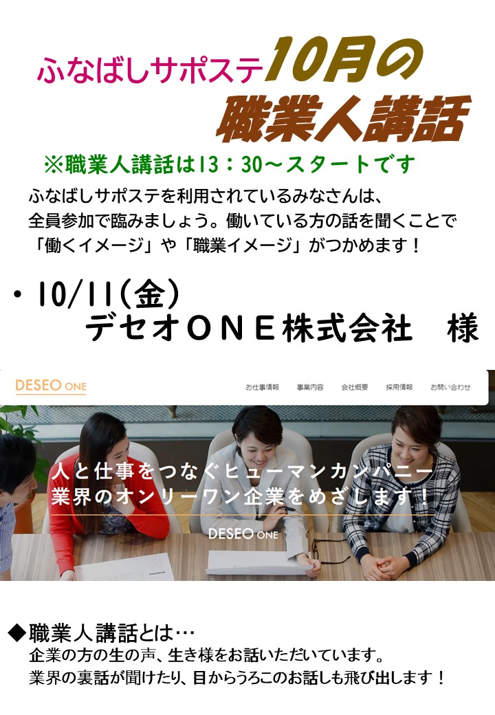 ふなばしサポステの『職業人講話』は毎回企業様にご来所いただき、 「企業の方の生の声」「生き様」をお話ししていただいております。 業界の現状はもちろんですが、 「家からめっちゃ近いし、とりあえず行ってみよう!」と思ったのが […]