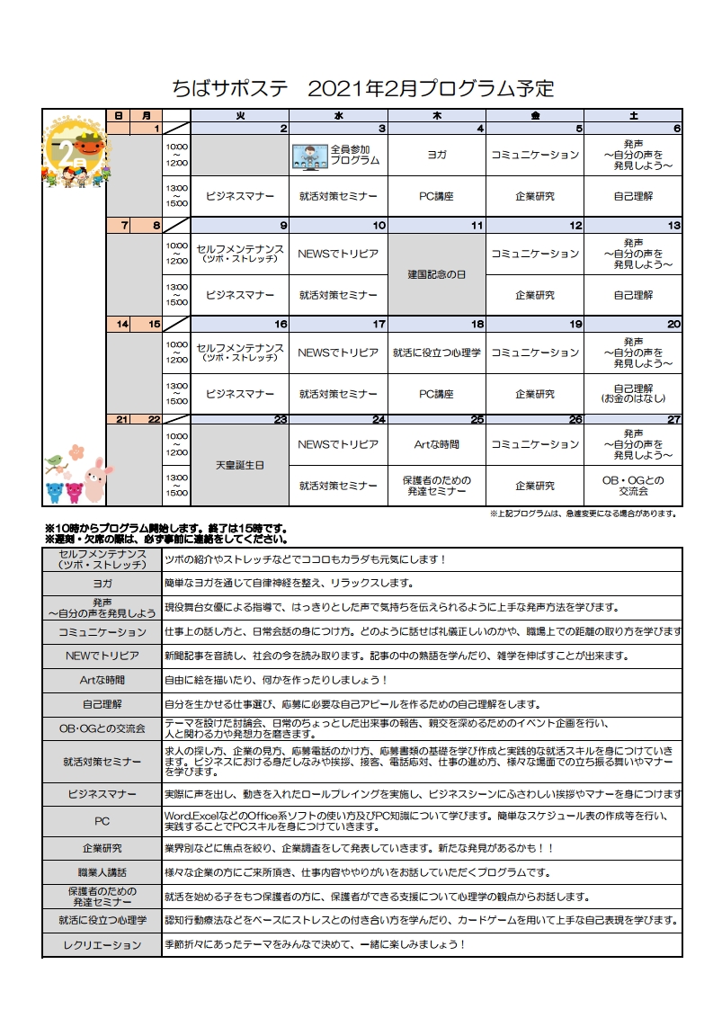 2月のプログラムが決まりました!