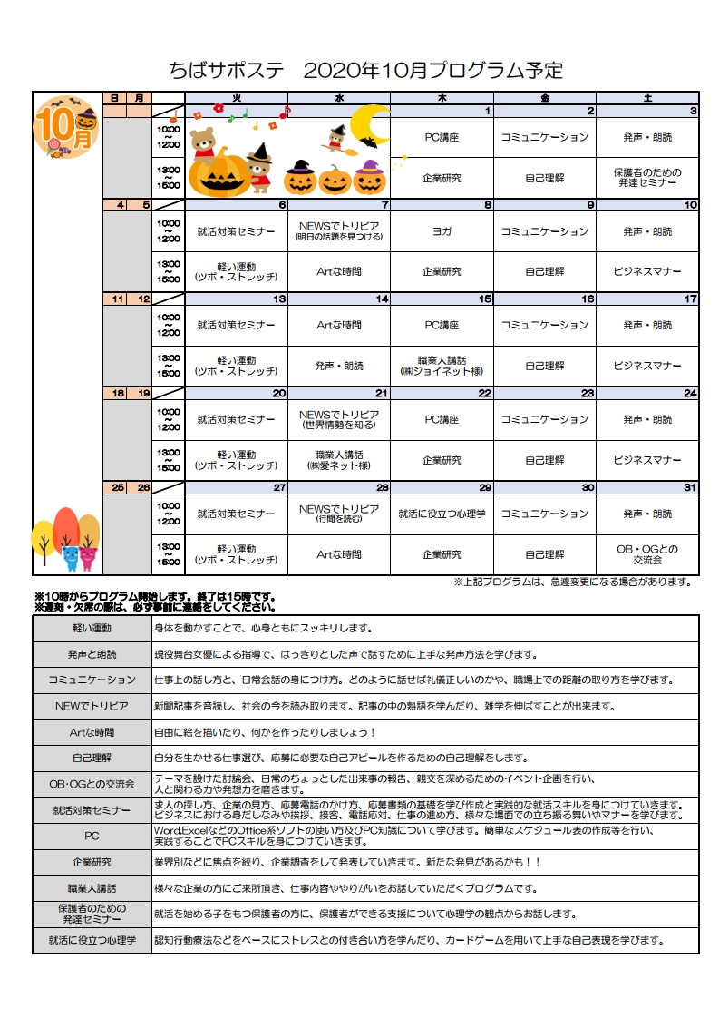 10月のプログラムが決定しました!!