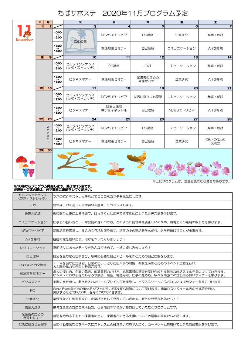 11月のプログラムが決まりました♪
