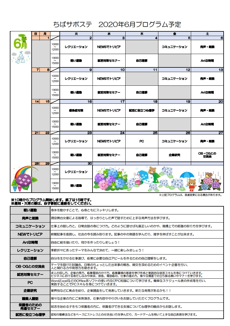 ちばサポステ6月のプログラムのお知らせ