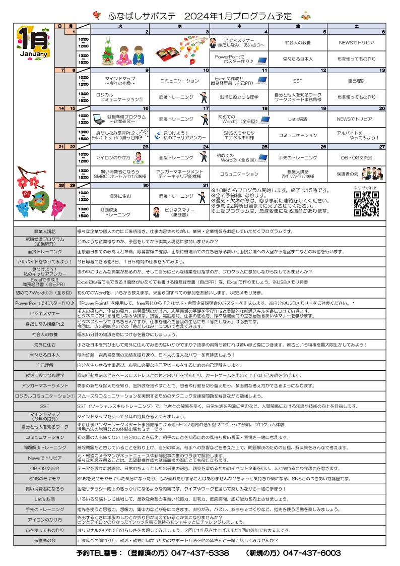 1月のプログラムが決まりました!