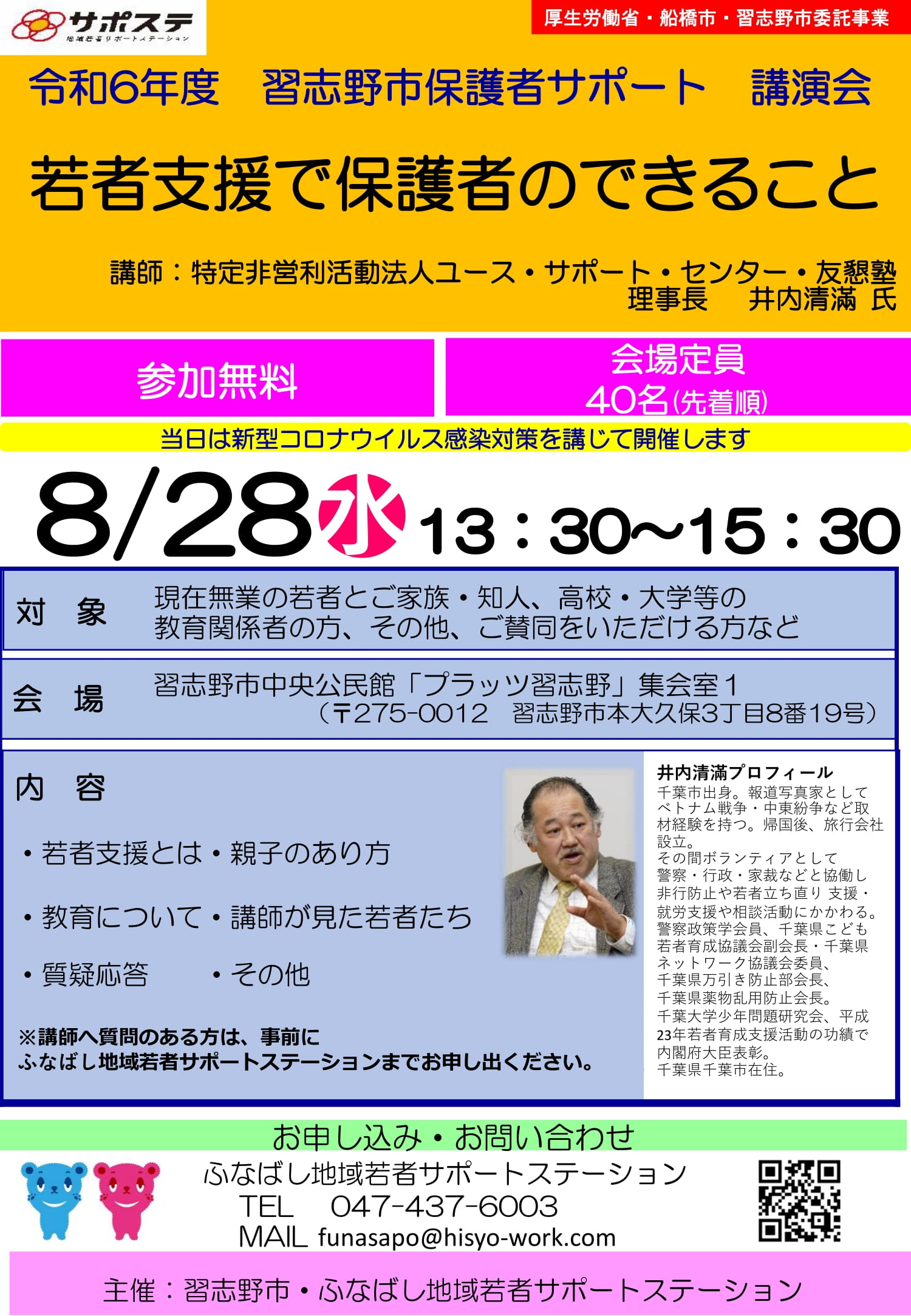 いよいよ来週です!8/28(水)「習志野市保護者サポート 講演会」