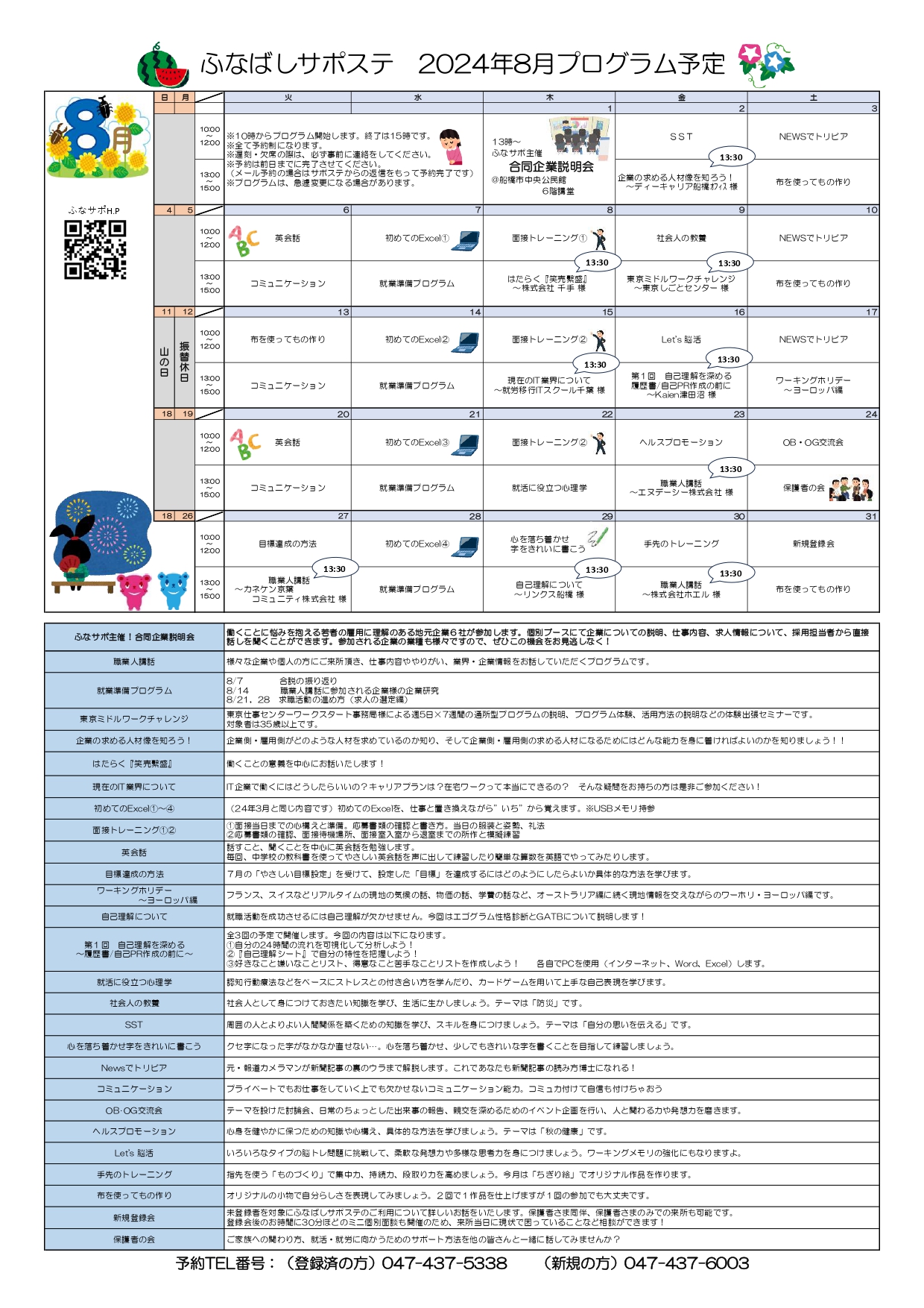 9月のプログラムが決まりました! 今月は自己理解のプログラムが3回あります。 ふなサポでの「自己理解」はただ自分を知るため、ではなく就労のための手段の1つです。 企業を選ぶとき、志望動機を書くときにも役に立 […]