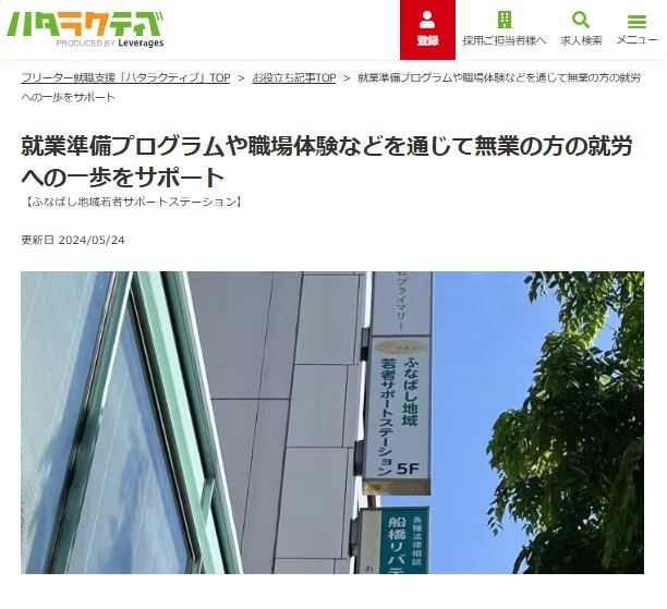 フリーター就職支援「ハタラクティブ」にふなばしサポステが紹介されました。 ふなばしサポステでのプログラムの様子や就労に向けた支援内容が掲載されております。 就業準備プログラムや職場体験などを通じて無業の方の就労への一歩を […]