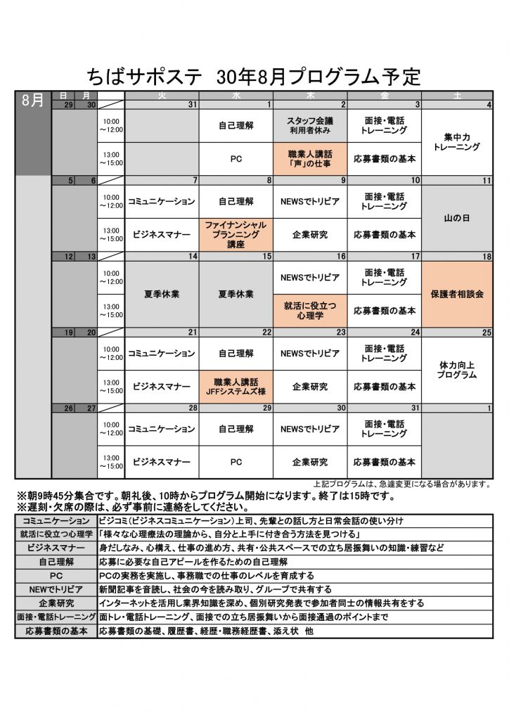 ※こちらのブログは、「ちばサポステ」運用時の内容です。令和5年4月から、ふなばしサポステへ移行しておりますので、プログラム内容などが変更になっている可能性があります。また、記事内の連絡先は「ちばサポステ」から「ふなばしサポステ」に変更されております。予めご了承ください。