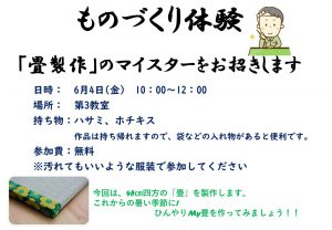 6/4(金)ものづくり体験~ミニ畳をつくろう!!