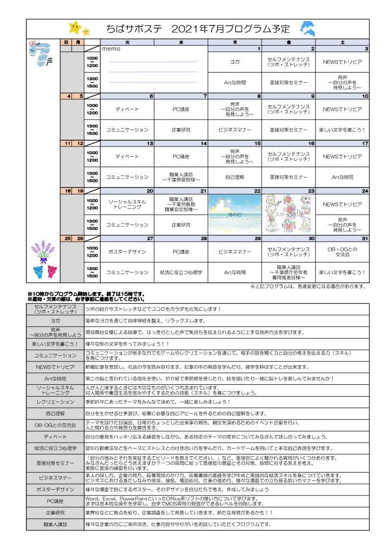 ※こちらのブログは、「ちばサポステ」運用時の内容です。令和5年4月から、ふなばしサポステへ移行しておりますので、プログラム内容などが変更になっている可能性があります。また、記事内の連絡先は「ちばサポステ」から「ふなばしサポステ」に変更されております。予めご了承ください。