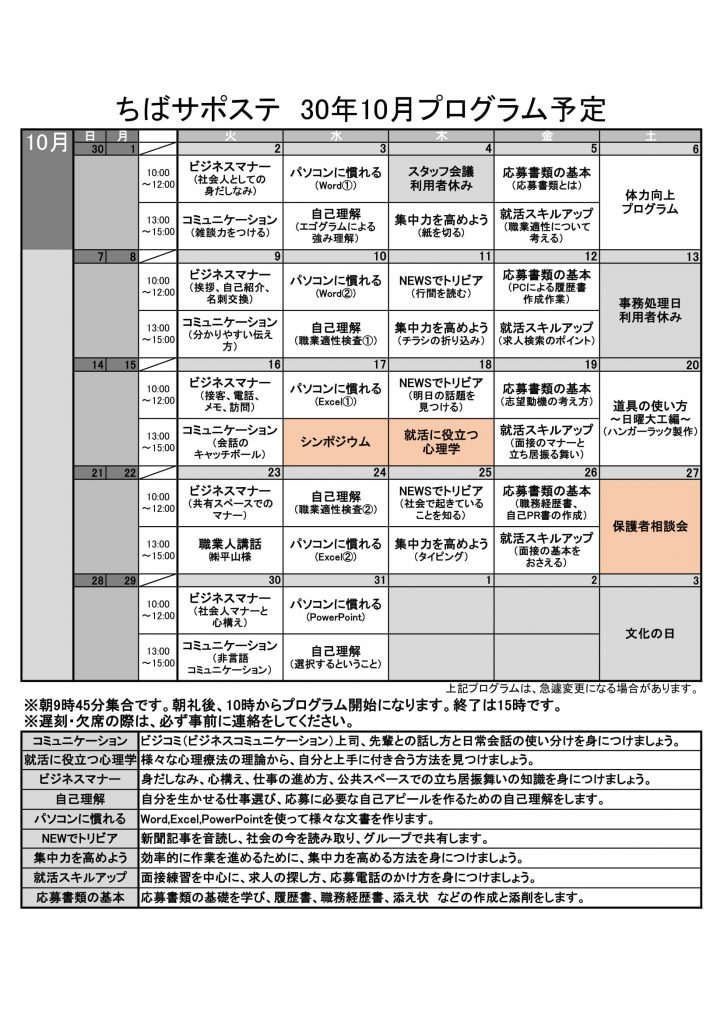 10月のプログラムをアップします。新しい講座も増えていますので、是非参加してください。