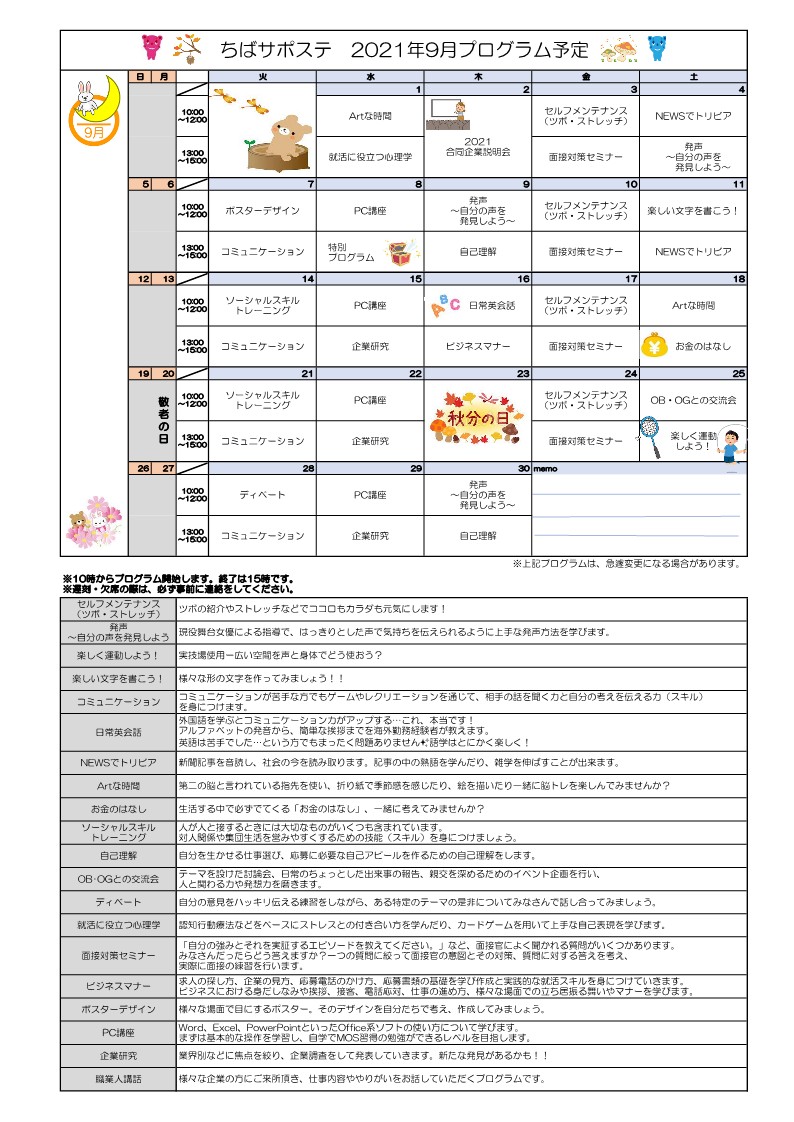 9月のプログラムが決まりました!