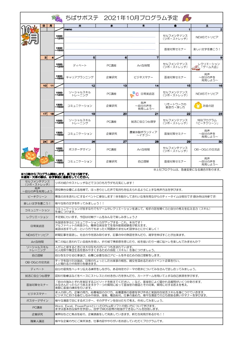 10月のプログラムが決定しました!