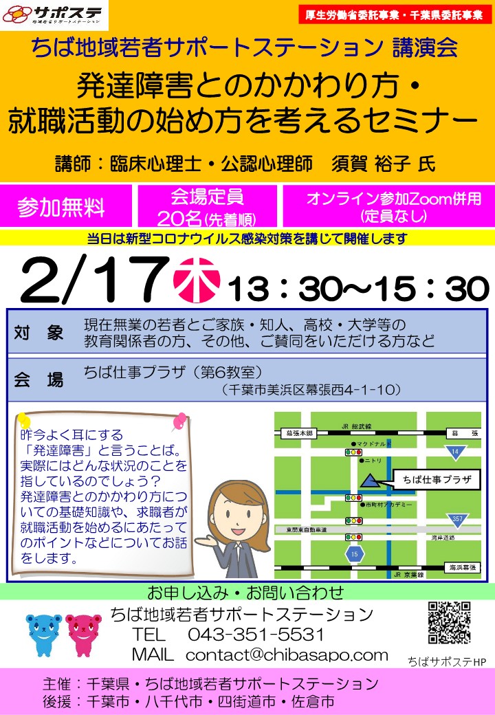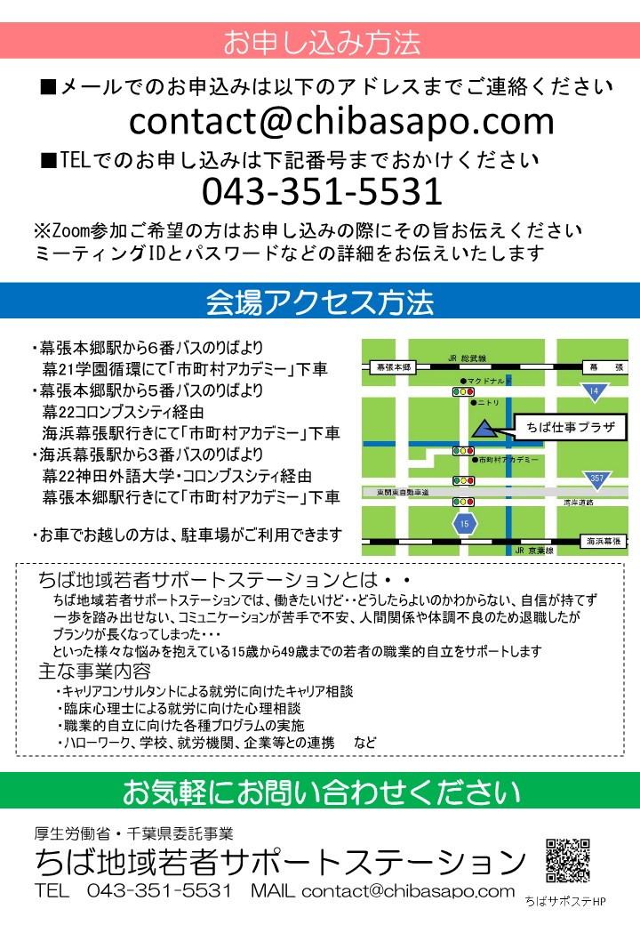 ※お申込み・お問合せは、「ちば地域若者サポートステーション」までご連絡ください。