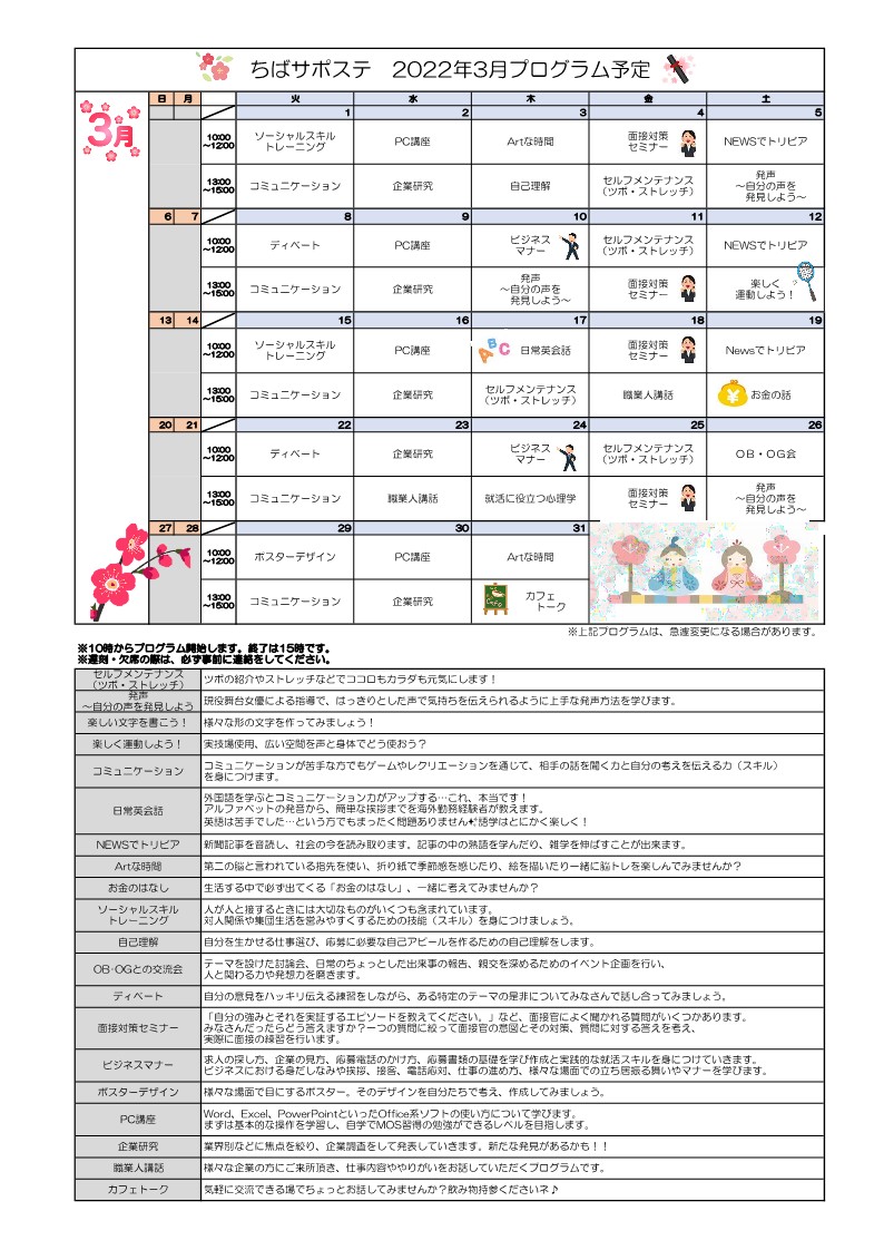 ちばサポステの3月のプログラムは職業人講話が2回!