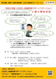 土曜日電話相談はじまります! | ふなばし地域若者サポートステーション|千葉県船橋市の就労支援 厚生労働省委託事業 船橋市・習志野市委託事業