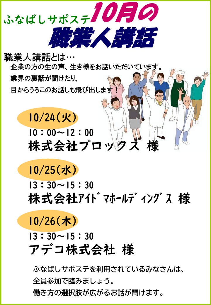 ふなばしサポステの『職業人講話』は毎回企業様にご来所いただき、